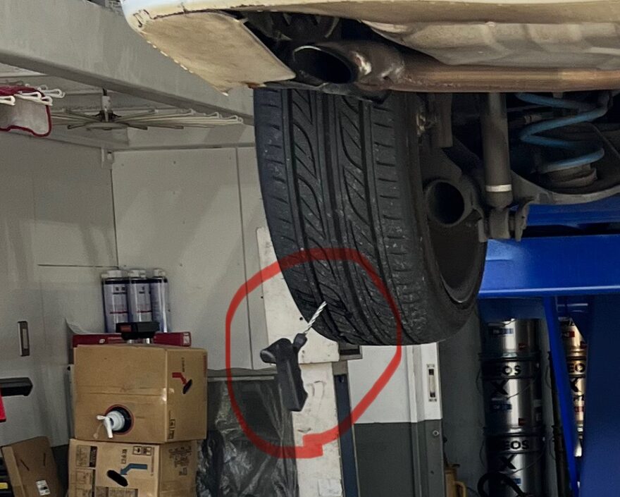 日曜日の朝に普段しない洗車に行ったお陰でパンクを発見!