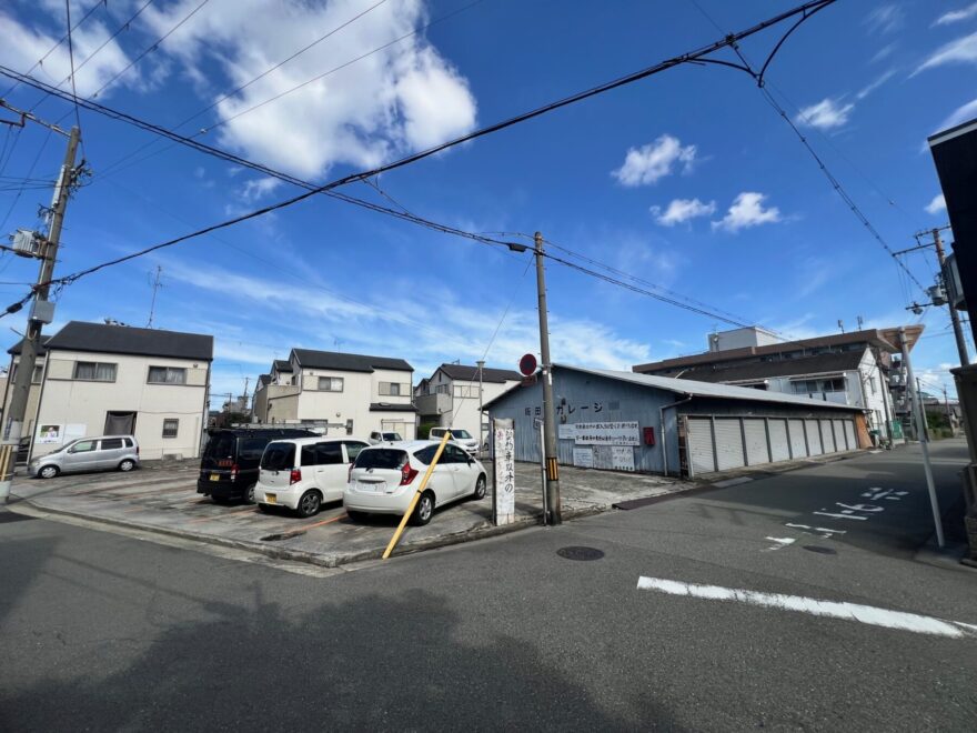シャッター付きガレージと平面駐車場の両方があるガレージなん